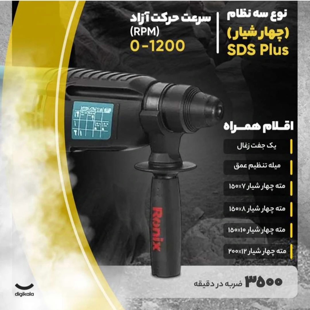 یک جفت زغال, میله تنظیم عمق, مته چهار شیار 7*150، مته چهار شیار 8*150،-مته چهار شیار 10*150، مته چهار شیار 12*200 و کیف حمل